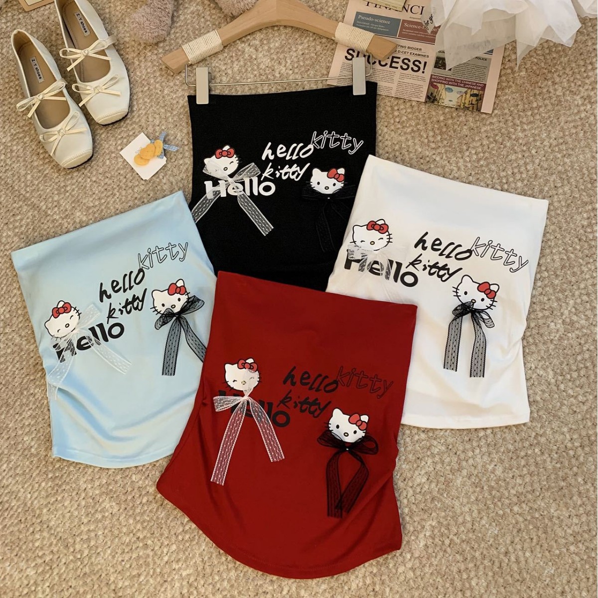 66029#新款夏季卡通涂鸦印花蝴蝶结美背内搭外穿短款上衣女