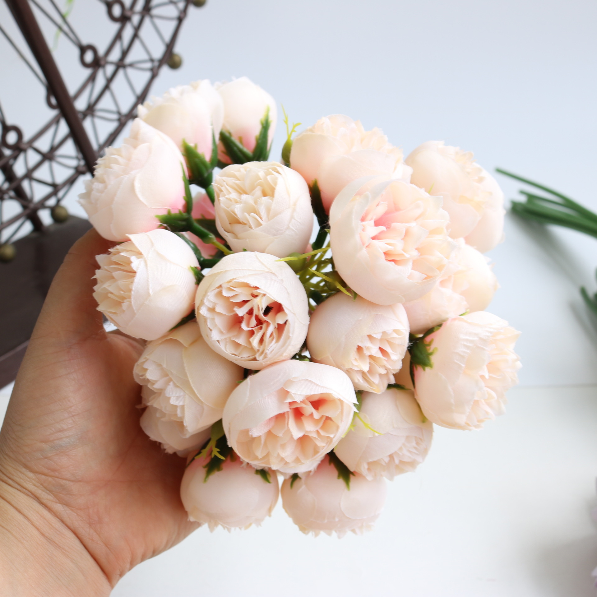 シミュレーション27頭の茶薔薇の花束牡丹の花は、偽の花の結婚式場の手を花の束の家の装飾の撮影道具をすくった