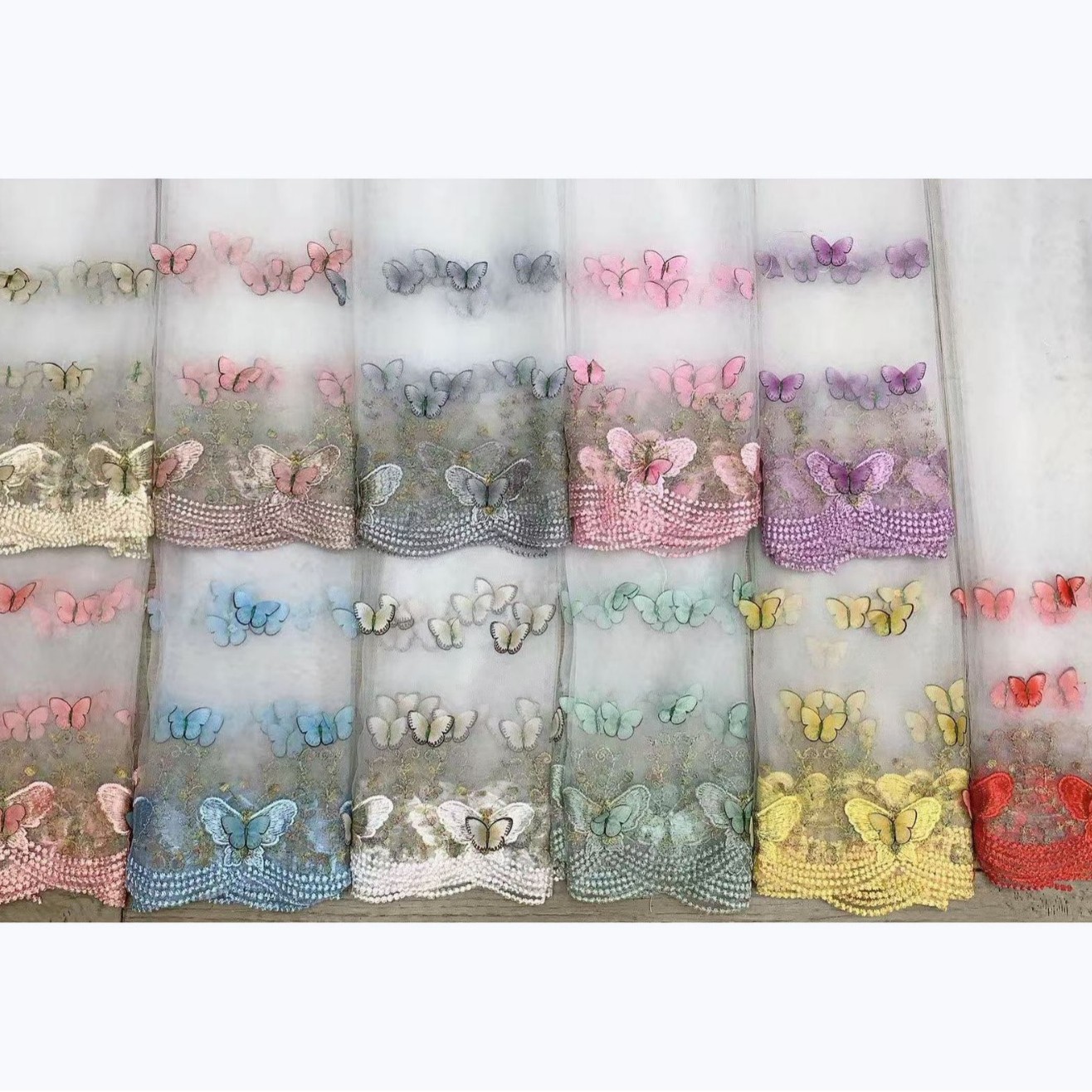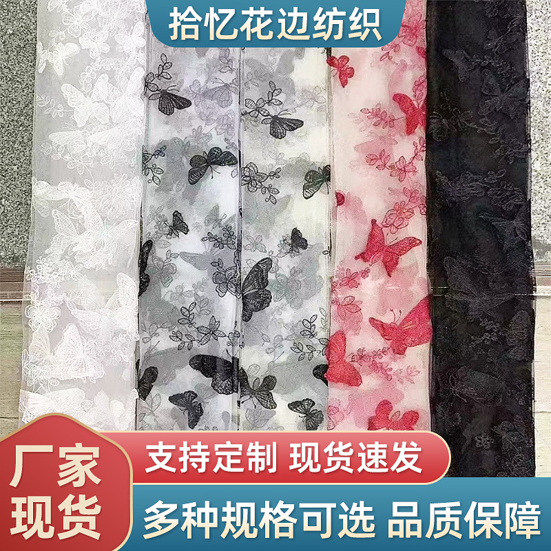 多色网纱立体蝴蝶绣花面料女童韩版潮流连衣裙蕾丝花边刺绣布料