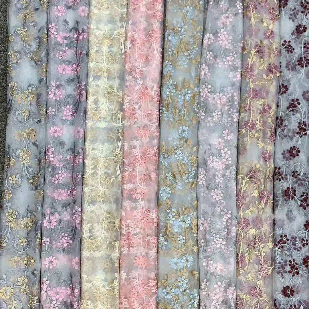 春と夏の新しい高精細メッシュ小花蝶刺繍生地ソフトメッシュ婦人服ドレスファッションレース