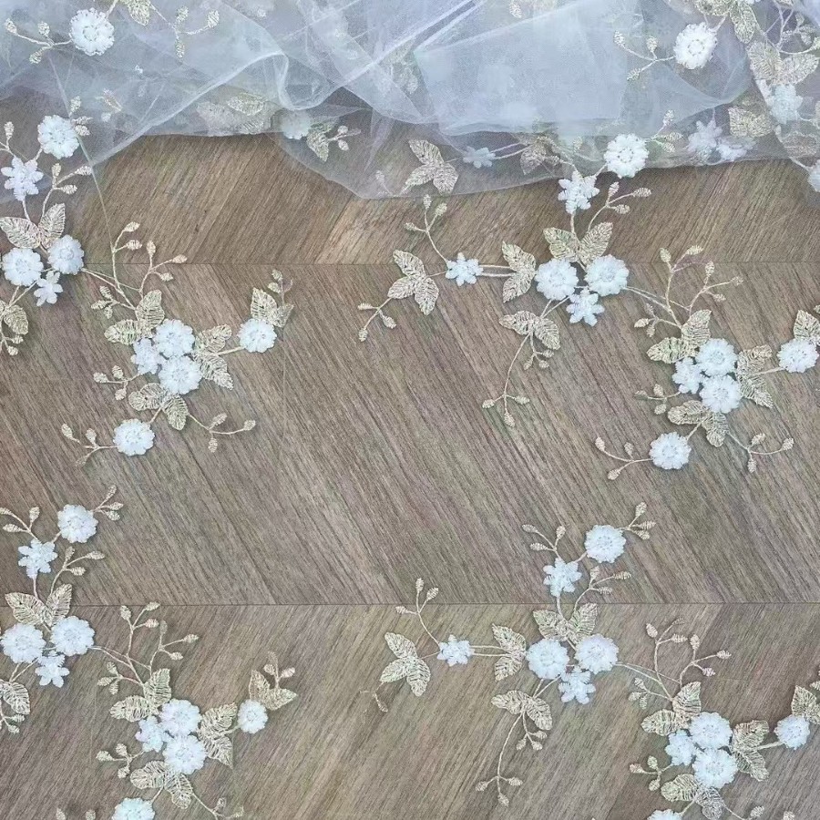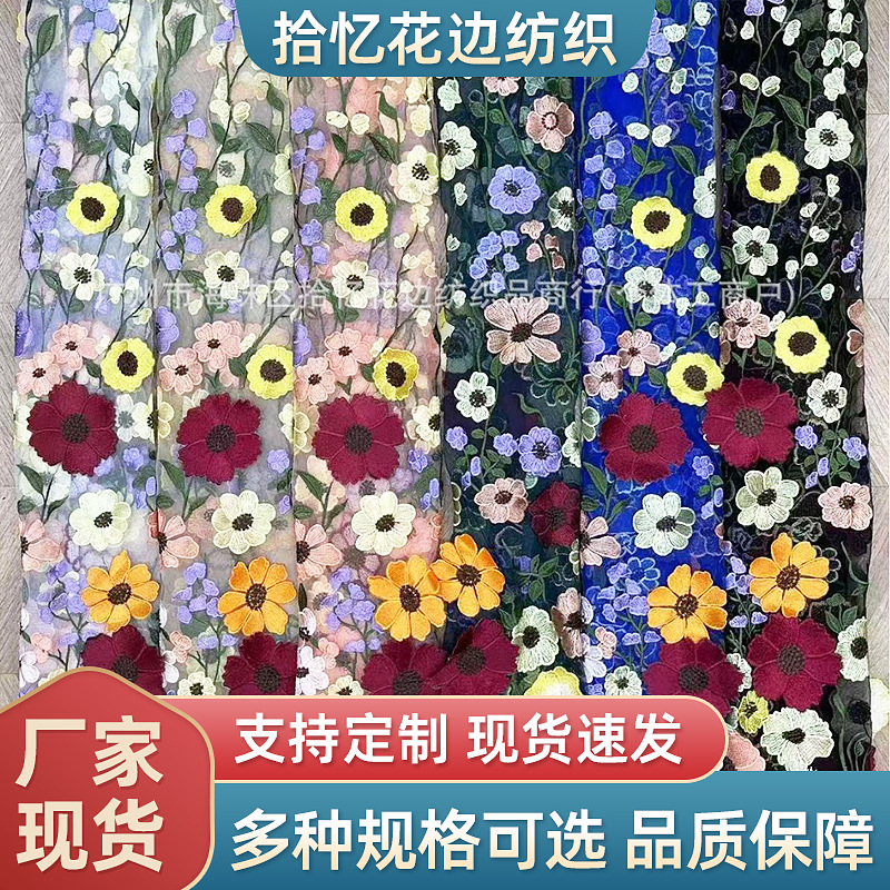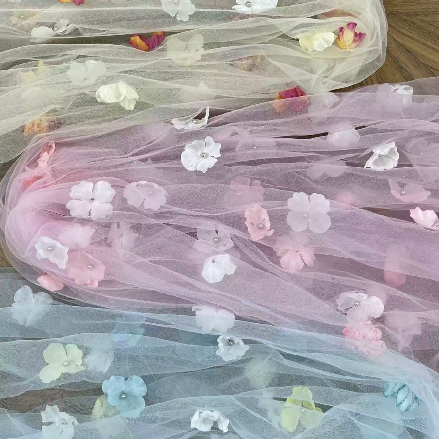 人気の直販新作フローティングフラワー刺繍レース子供服メッシュレース立体花びら刺繍生地