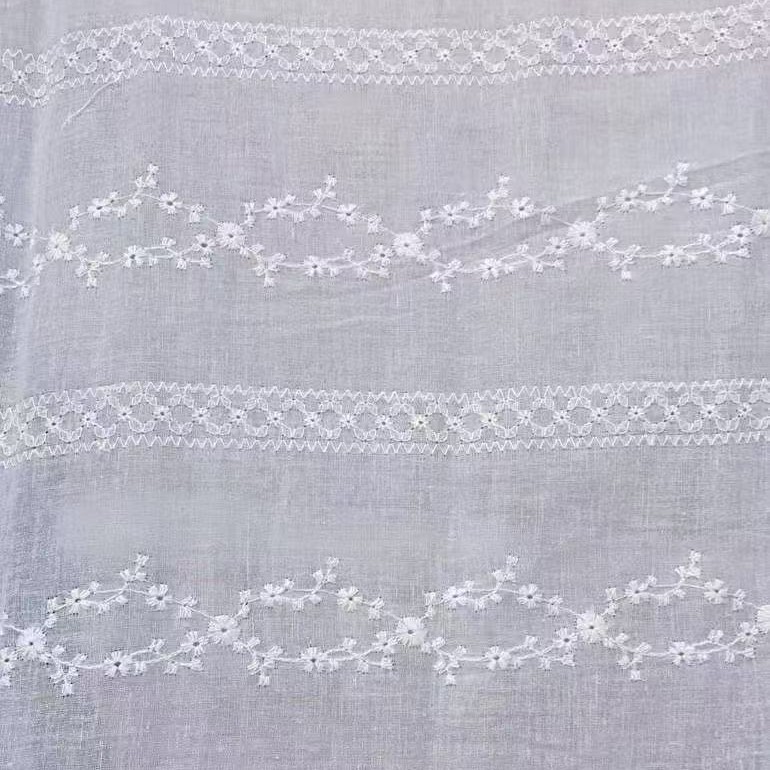 蕾丝布料全棉横条花纹绣花面料棉线刺绣服装连衣裙纯棉绣花布批发