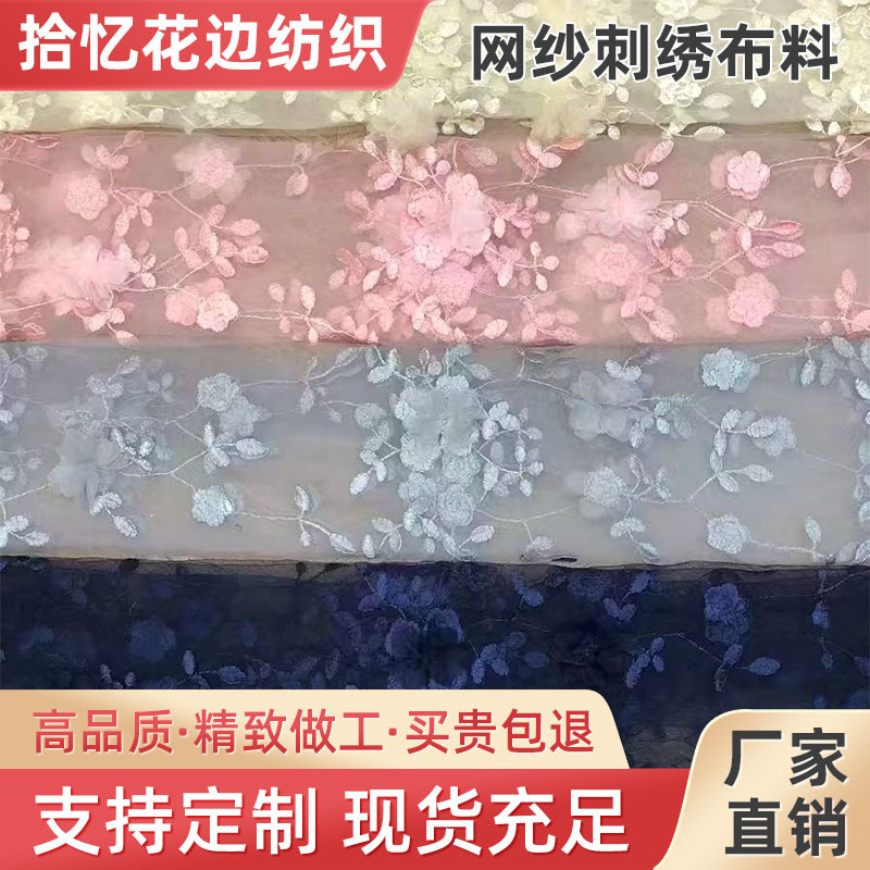 网纱连衣裙立体订花绣花布料春夏女童时装贴花刺绣花边面料