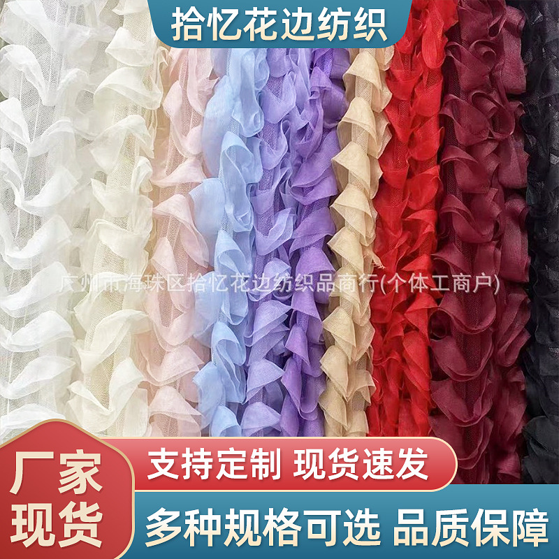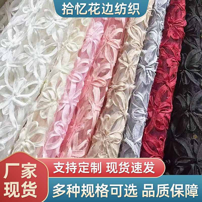 新しいメッシュ波状リボン刺繍生地立体スリーインワンレースリボン刺繍生地女の子ドレスダンス