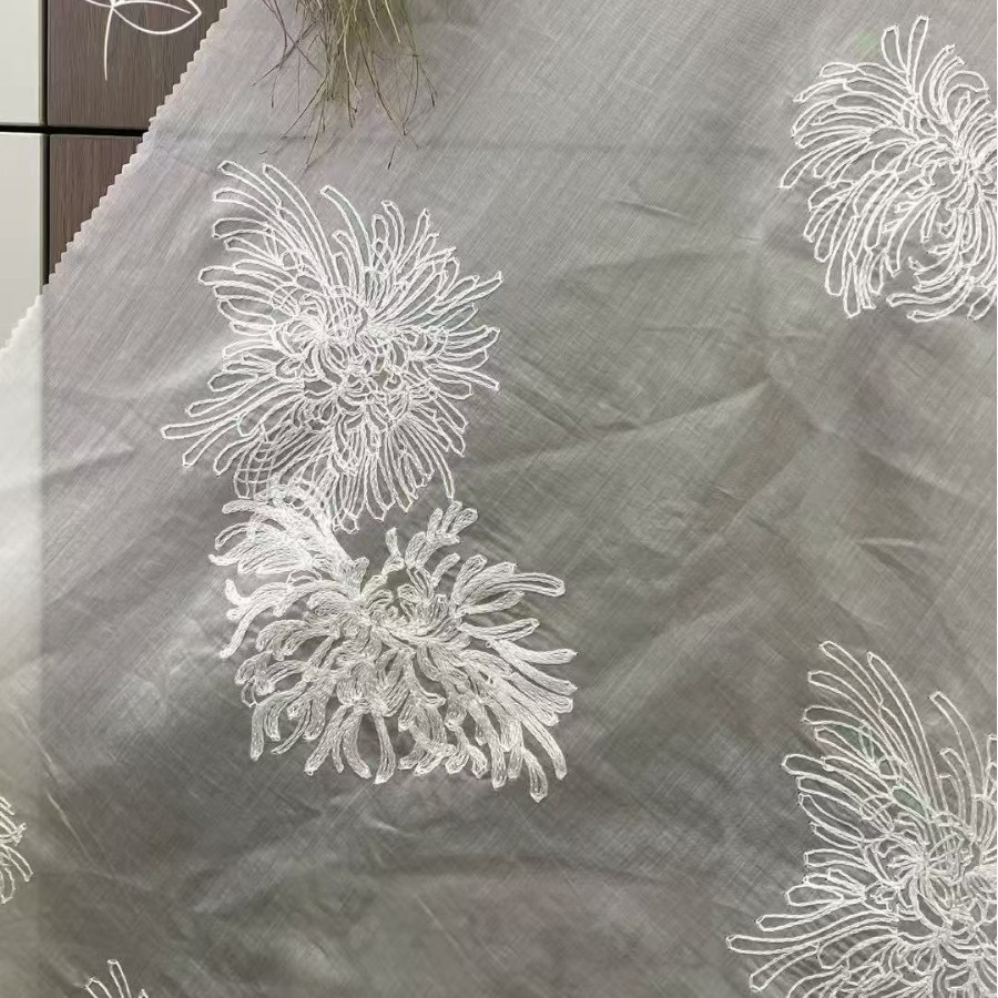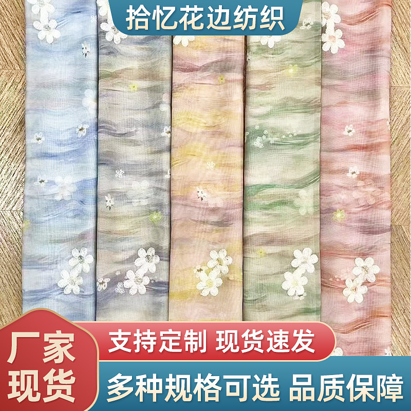 工場直販 シフォン刺繍プリント金糸グラデーション小菊刺繍布プリントシフォン生地