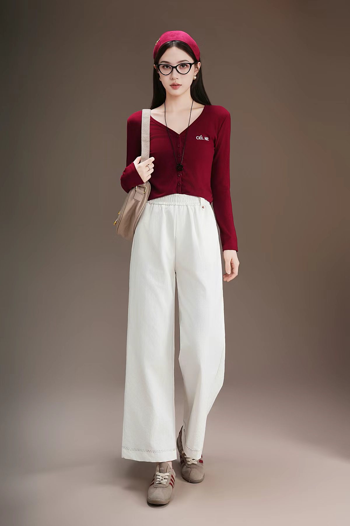 女性用のクラシックな9点ワイドレッグパンツ、ハイウエスト、ゆったり、薄手、オフホワイトのナローストレートパンツ、スリムな花のつぼみパンツ