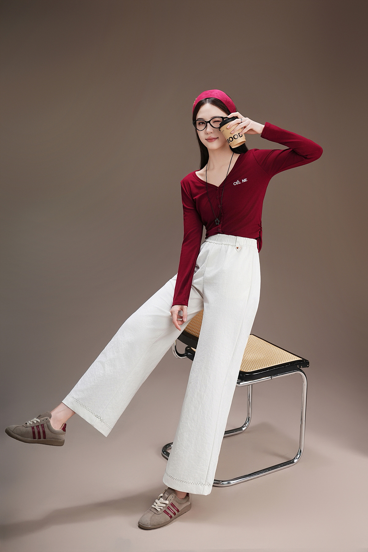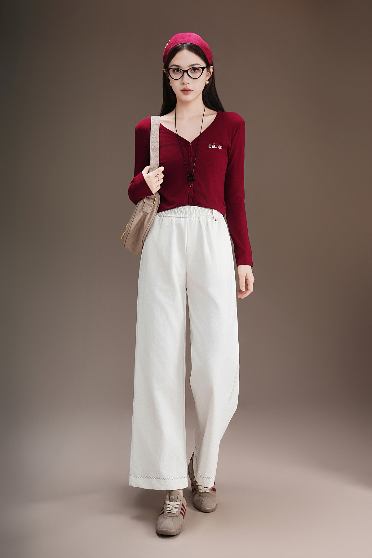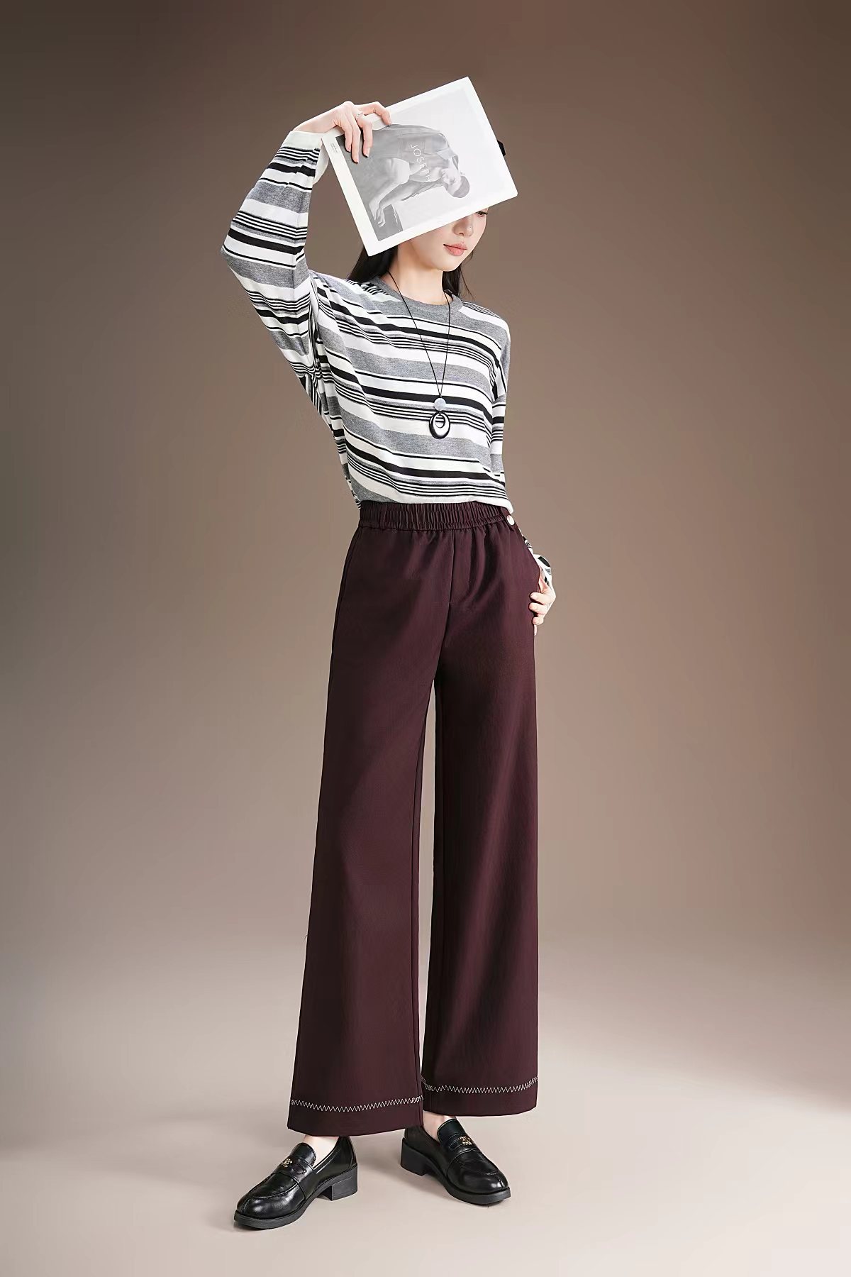 【专柜花苞裤】秋季窄版阔腿裤女新款中高腰时尚花苞腰休闲直筒裤