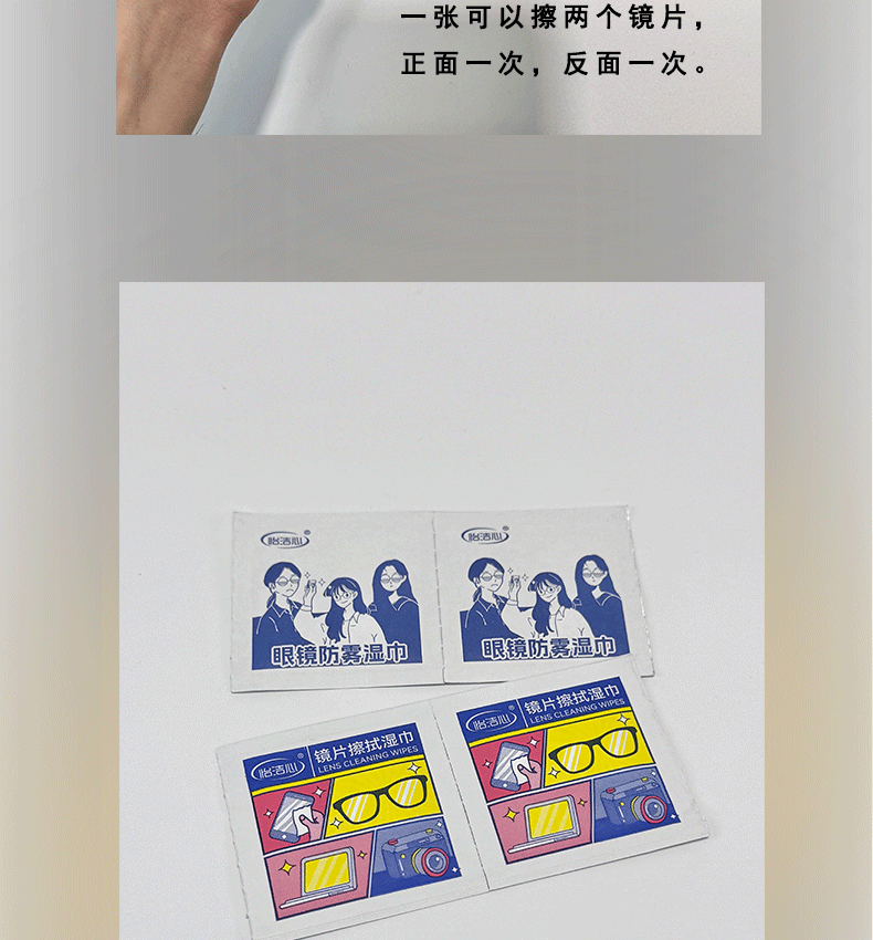 眼镜清洁湿巾擦眼镜湿巾专用湿巾纸独立包装单片一片防雾镜片湿巾