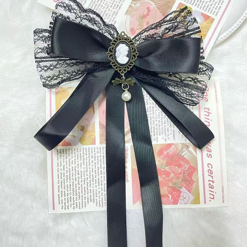 黒蝶ネクタイロリータレース日本製ネックラインカレッジブローチ女性の高級気質蝶ネクタイ JK ネックフラワー
