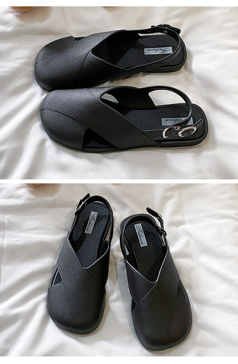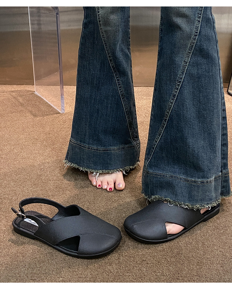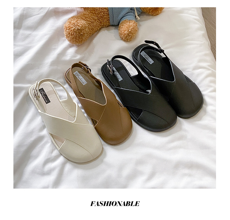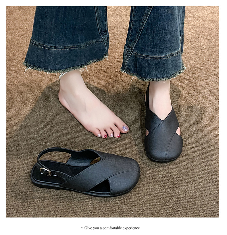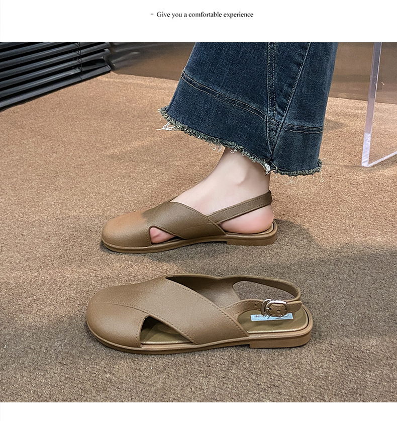2025新型包頭ローマサンダル女性は夏のフランス式包頭アンドロメダ式ローマスリッパ女性を履いている