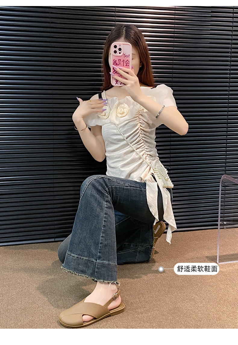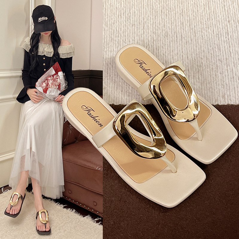 2025新款方头露趾人字凉鞋外穿百搭夹趾休闲平底金属扣小众夏透气
