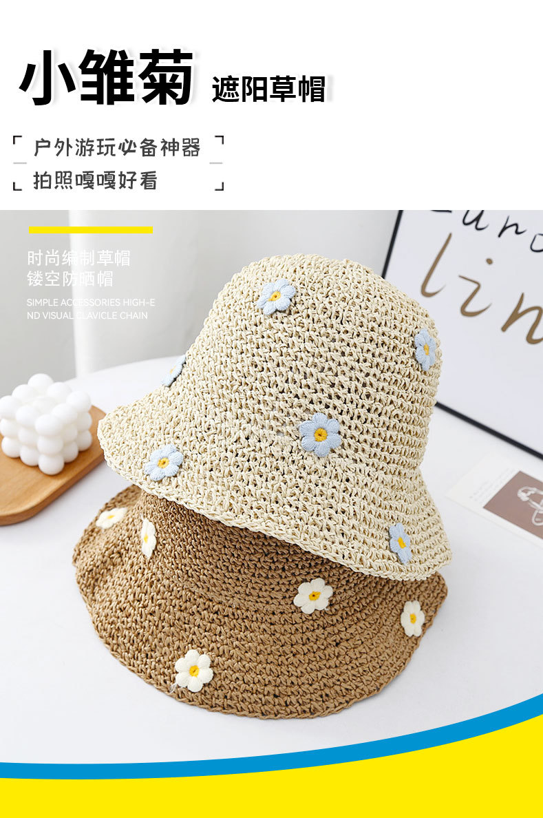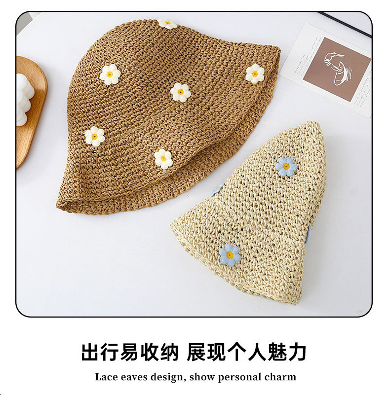 夏のファッションは透かし彫りでバケツの帽子を編んでいます。