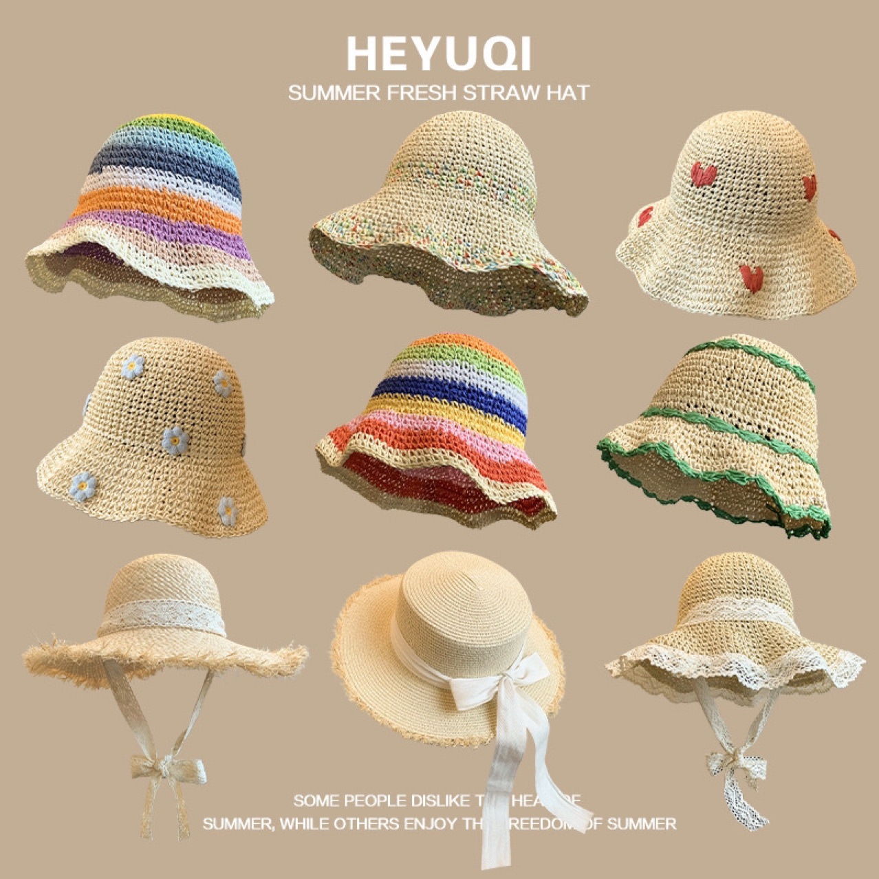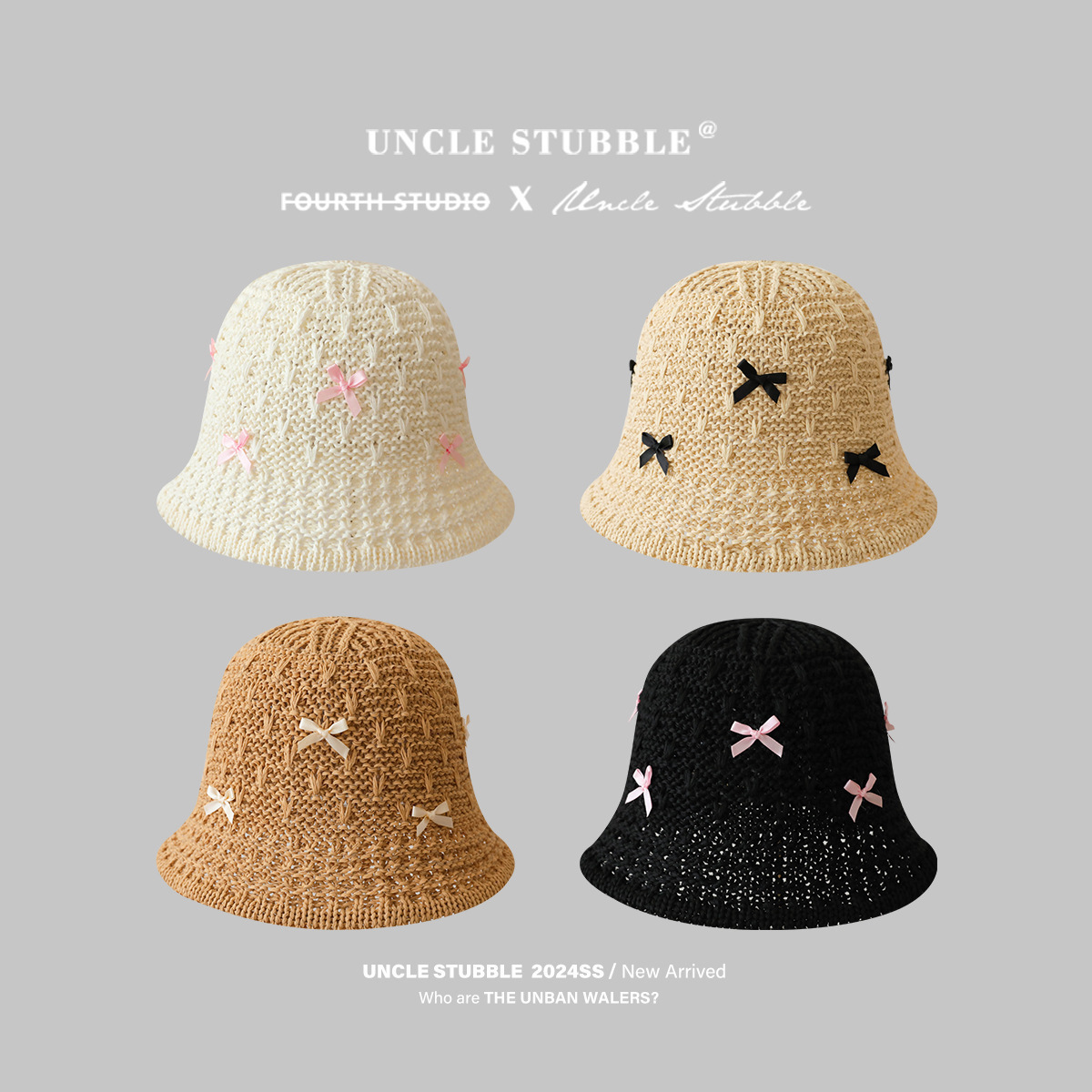 子春夏季蝴蝶结草帽出游甜美韩国东大门海边防晒帽可爱渔夫帽女生