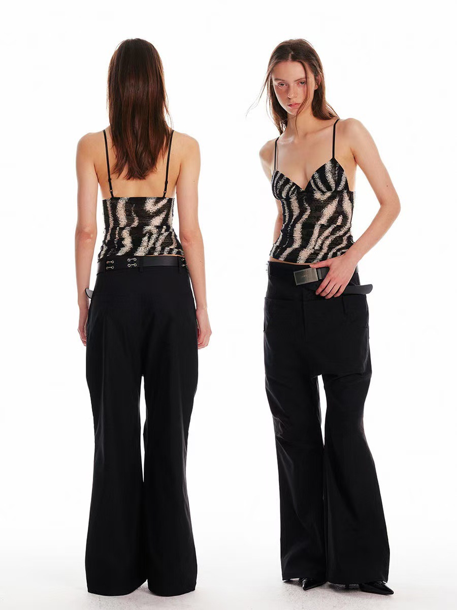 2025夏のアメリカのレトロな新しいデザイン感の偽の2つのスリムなストラップのベストのギャルの上着