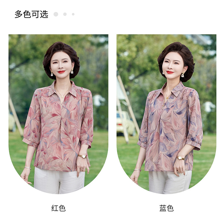 妈妈装夏七分袖T恤女薄款洋气妈妈翻领衬衣老年人衣服富太太上衣