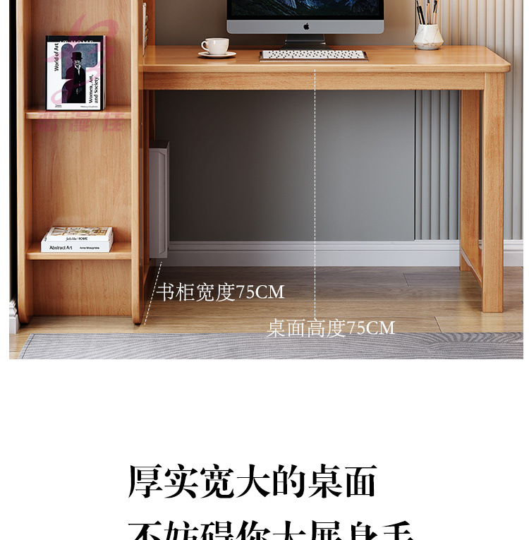 全無垢材デスクと本棚一体型組み合わせホームベッドルームコーナーテーブル本棚付き学生学習デスク