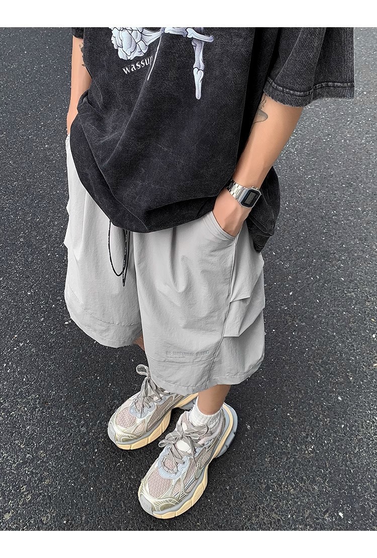 半ズボンの男性2025夏の新型のしわの工装の機能の速乾の傘の兵のズボンの薄い金のゆったりしているカジュアルな5分のズボンの男性