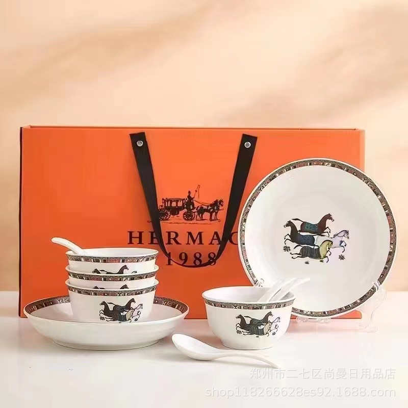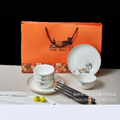 Youbaite エルメス 10 点セット家庭用セラミックボウル、皿、箸、食器セットユニット会社福利厚生ギフト卸売