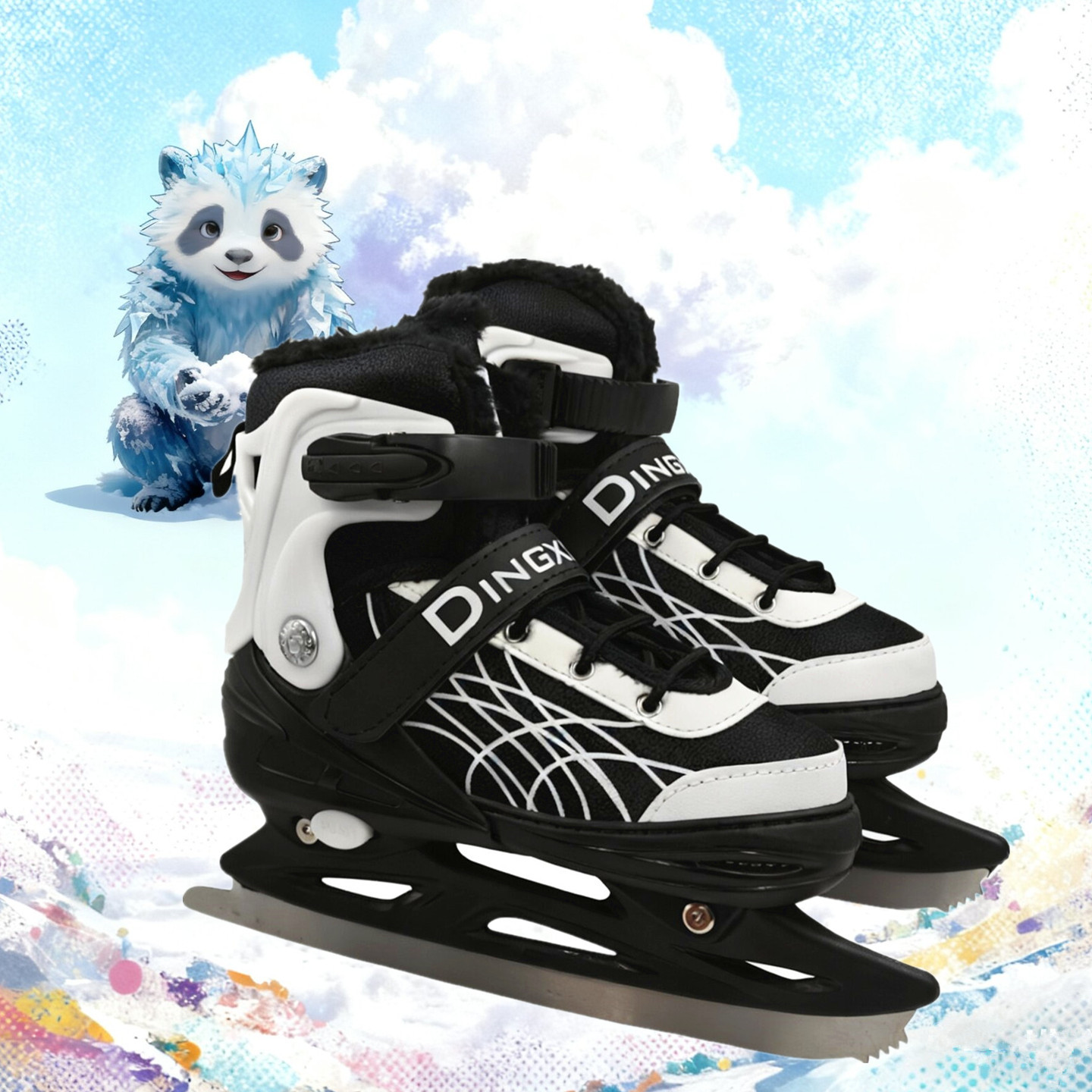 ブラックドラゴン伸縮コード子供用スケート、大人用スケート、男性と女性の初心者アイスホッケースケート、プラスベルベットフィギュアスピードスケートシューズ