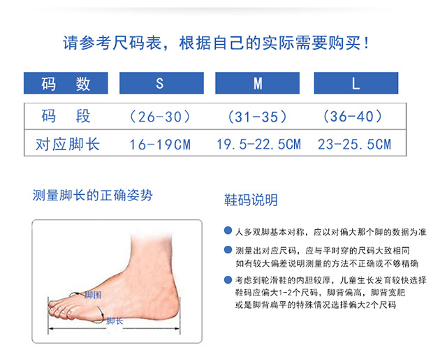 サイズ 26~30ヤード(16~19cm),サイズ 31-35 (19.5-22.5cm),サイズ 36-40 (23-25.5cm0
