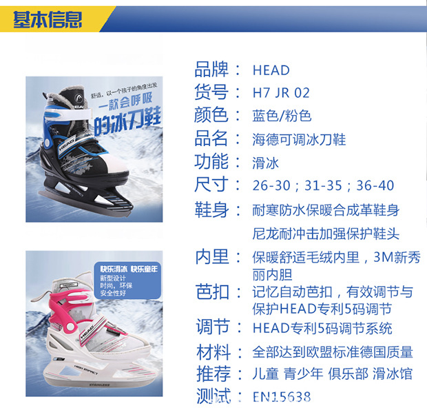 海德HEAD成人冰刀鞋可调冰刀冰球刀真冰滑冰鞋球刀伸缩鞋国内外销