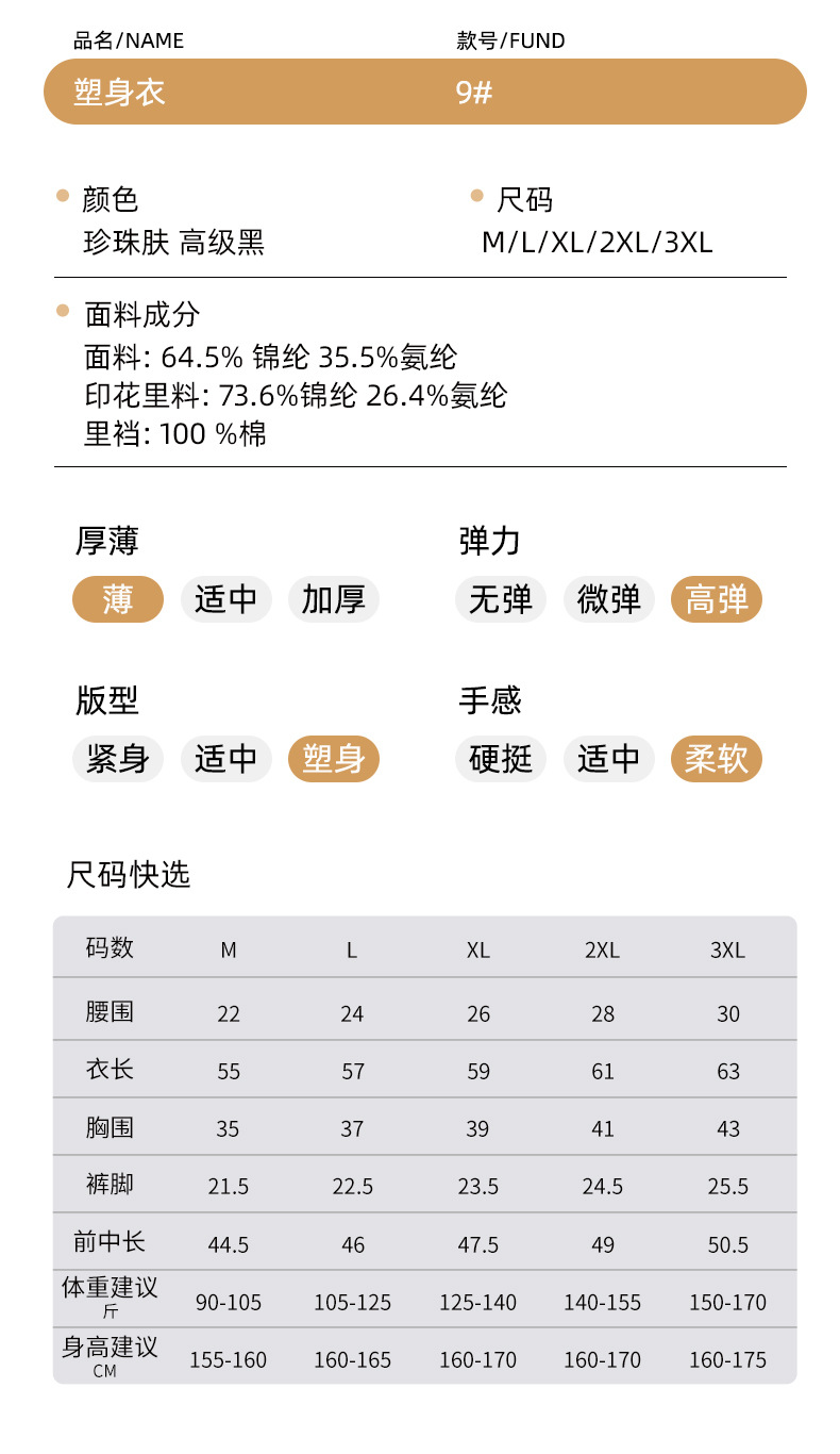 婷美新款无袖体雕塑身衣后脱式免穿文胸聚拢收腹提臀塑形美体束身