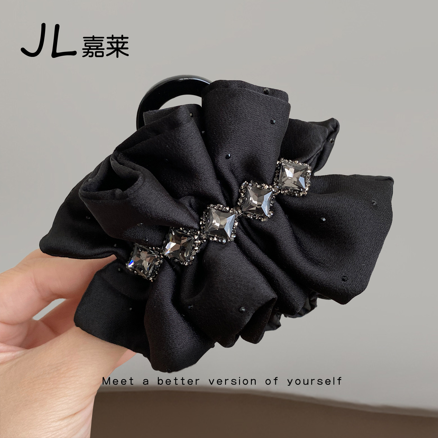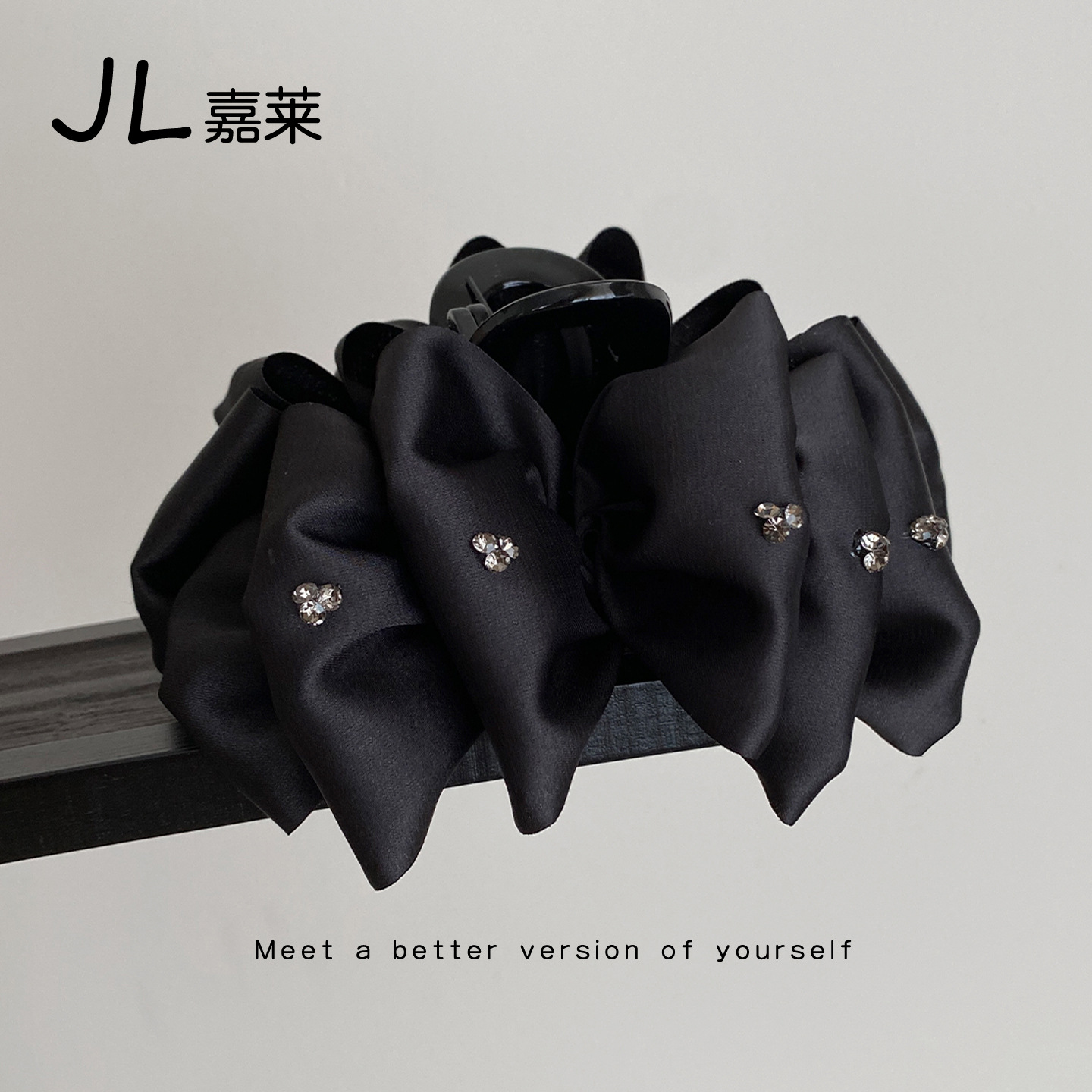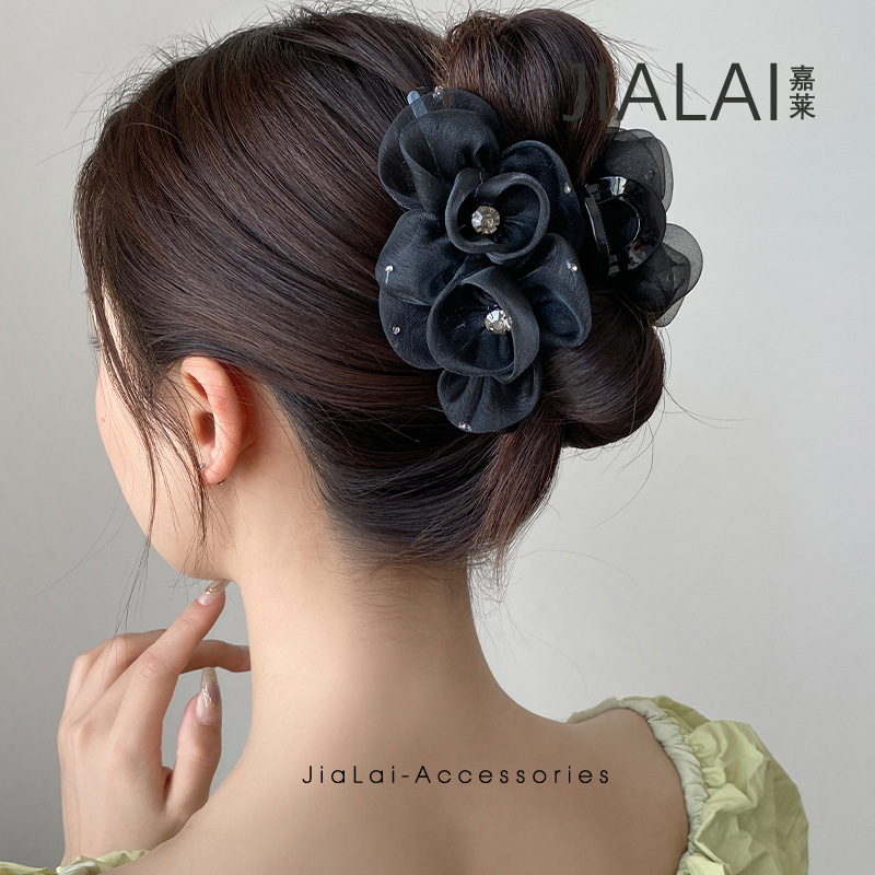夜宴高级感黑色闪钻多层蝴蝶结抓夹时尚轻奢后脑袋盘发鲨鱼夹发卡