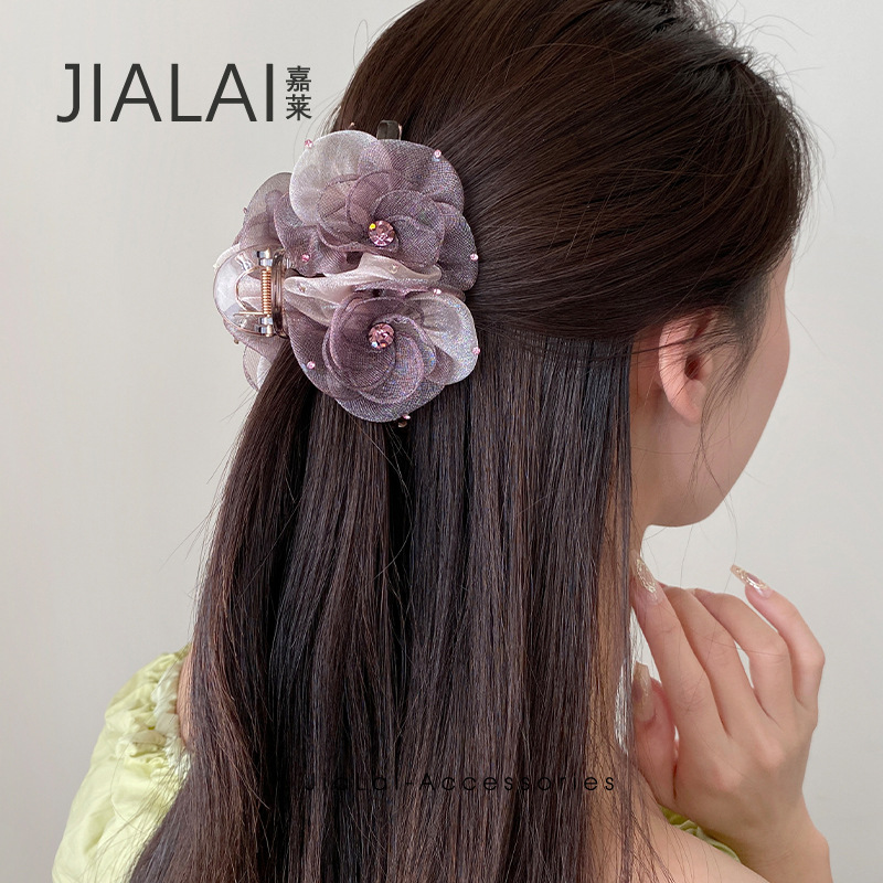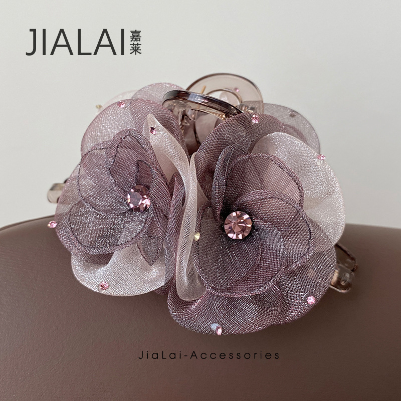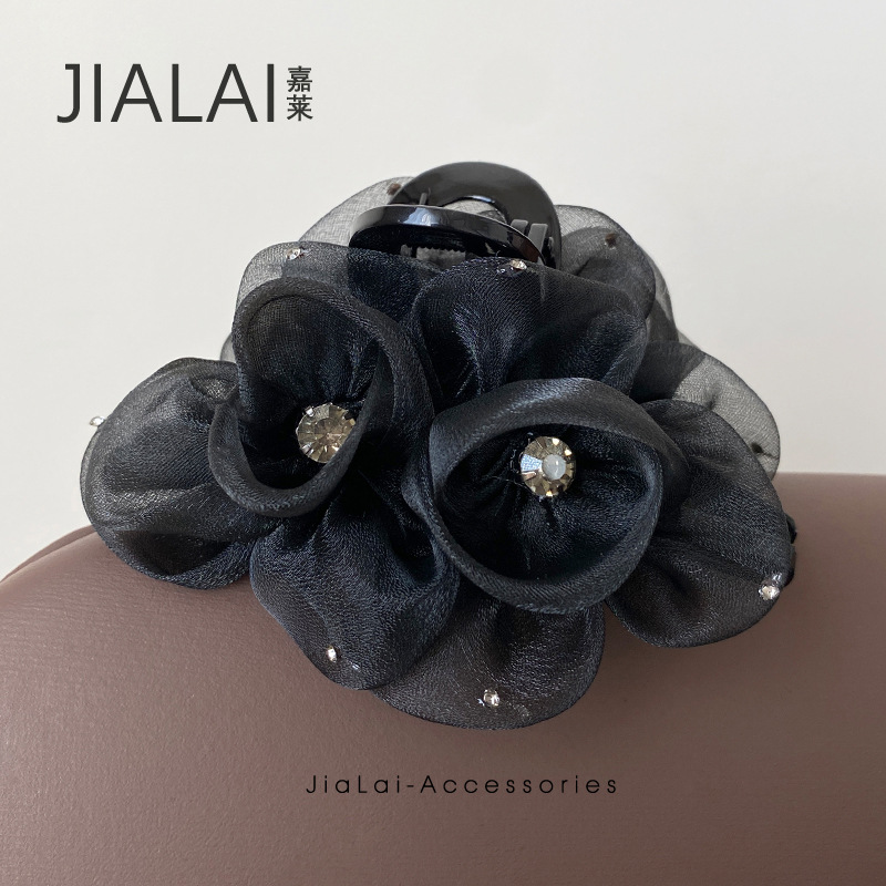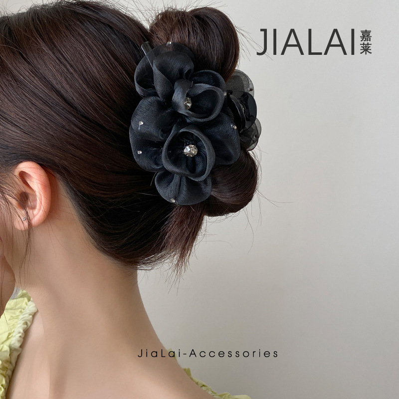 フレイシーは同じ立体花卉髪飾りの黒いピンクの両面に女性の大サイズ2025の新しい軽贅沢ヘアピンを挟みます。