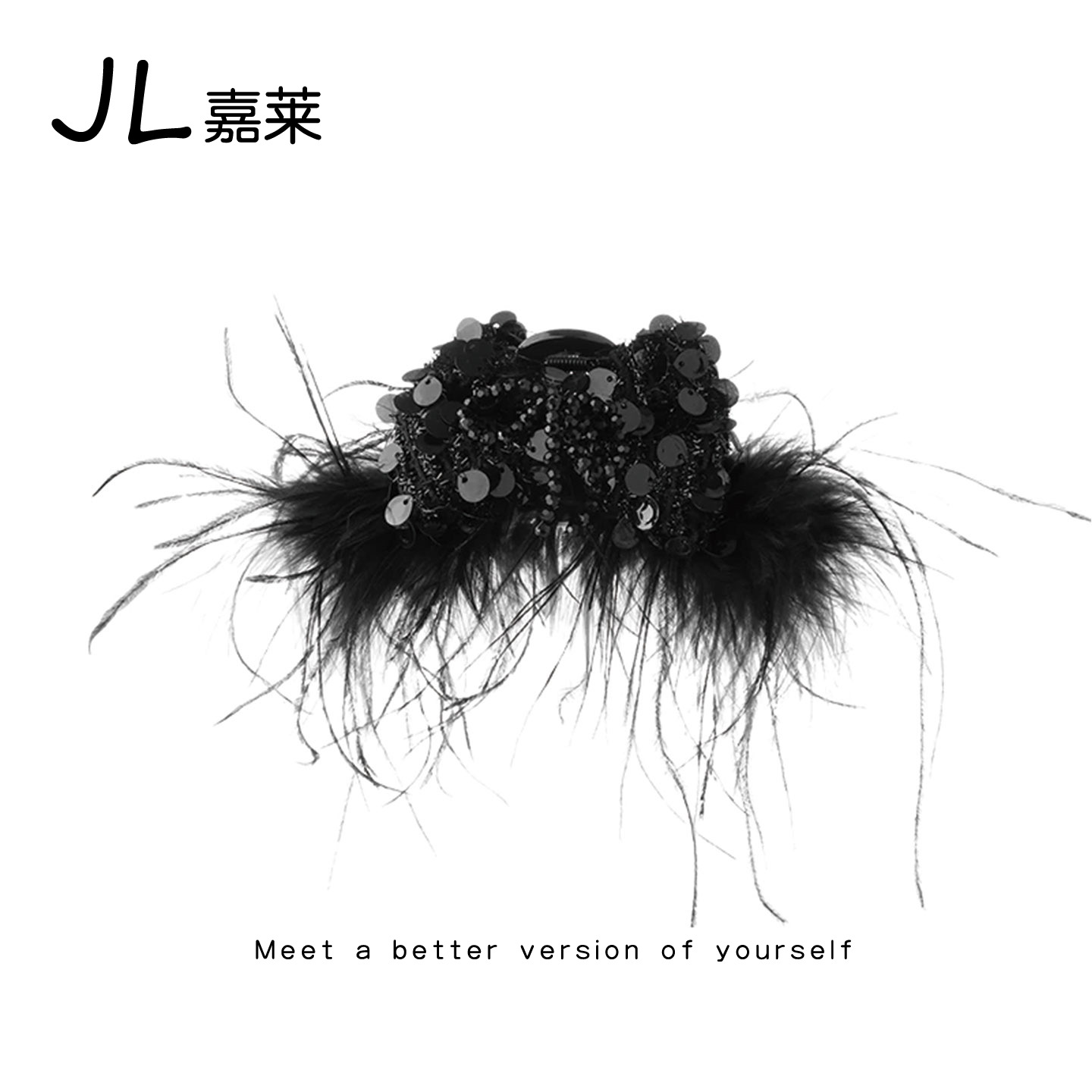 弗弗西FFX[月绮罗]芊芊羽毛轻盈高级感显发量抓夹黑色大号发量大