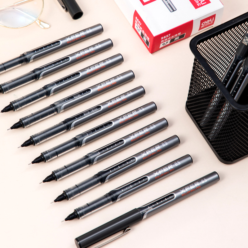デリ S656 ストレート液体ボールペン試験水性署名ペンオフィスビジネス黒ペン学生文具ゲルペン