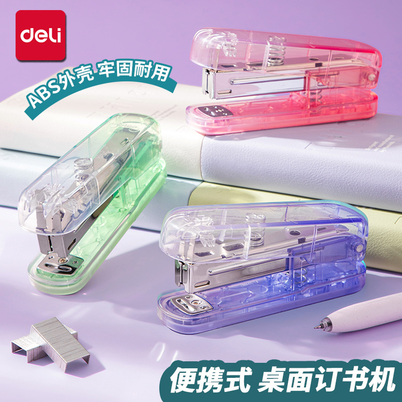 得力订书机学生用高颜值便携式透明订书器文具办公用品12号钉书机