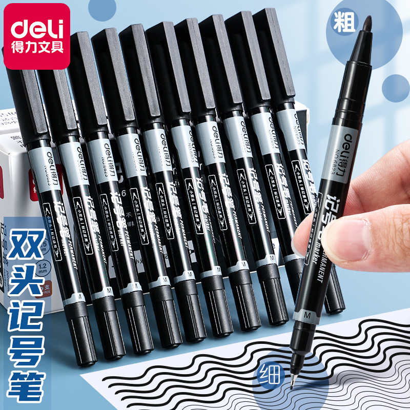 得力6823ダブルヘッドのマーカーの黒い線のペンの卸売りの太さの油性の線のペンのムースの頭のペンの大きいペン