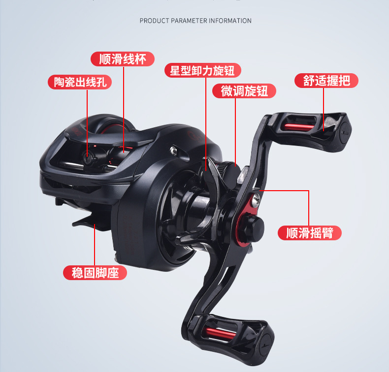 科美龙黒赤ウォータードロップリール、スムーズなルアーリール、強力な黒魚釣り、繊細なマイクロフィッシング、筏釣りリール、馬口魚釣りリール