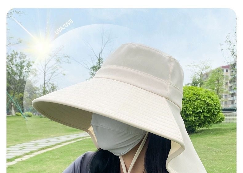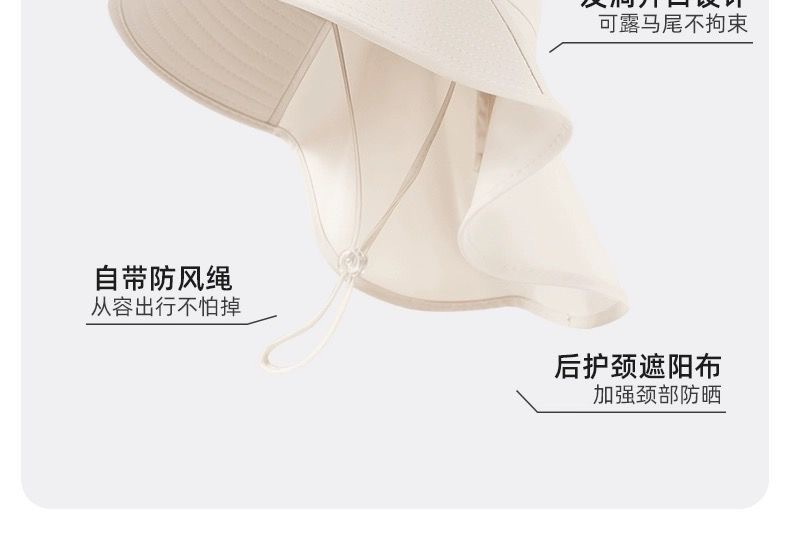 女性用ネックプロテクションサンハット、つばの大きなショールハット、ハイポニーテールハット、夏の日よけと顔を覆うフィッシャーマンハット、トレンディなサンハット