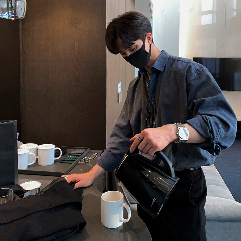 高級デザイン感クラインブルーシャツ男性長袖カジュアルゆったりコートごろつきかっこいい春と秋のペンダント感シャツ