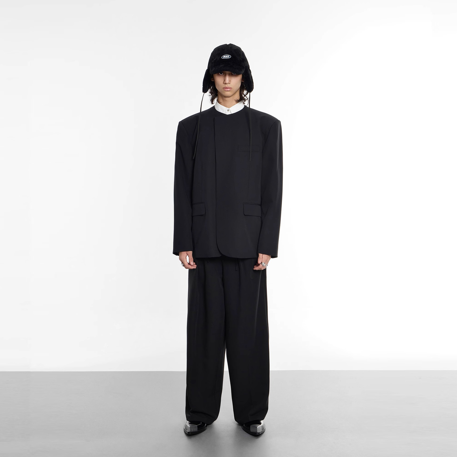 新中国式高級デザイン感丸襟肩掛けスーツジャケット男春秋カジュアル婚約襟なしスーツセット
