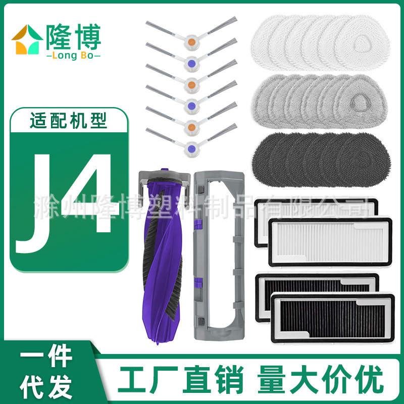 メインブラシ1本,サイドブラシ-J4 1組,サイドブラシ 1 組 --- アップグレードモデル,黄色の片面ブラシ 1 個 - J4 Lite,フィルター1枚,雑巾1枚,灰色の布1枚,カバー1枚,洗浄液1本,銀イオン1個,ラグホルダー1個,活性炭フィルター1個,抗菌ラグ1枚,クリーニングタブレット1箱