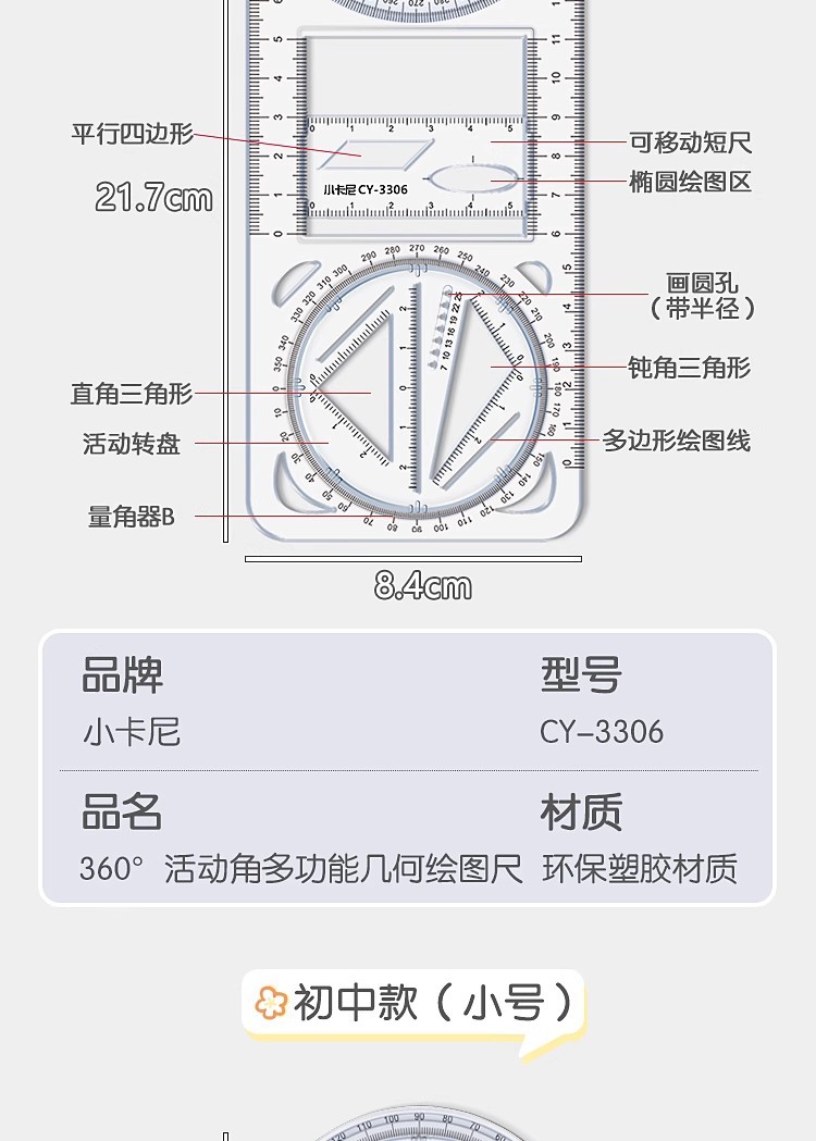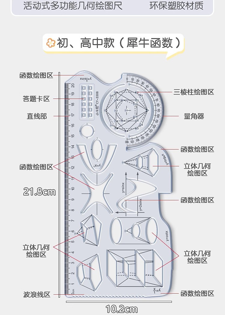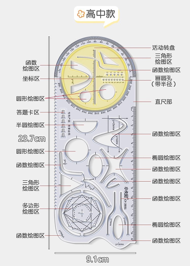 中小学生多功能尺子高中数学函数几何绘图尺抛物线三角量角器直尺