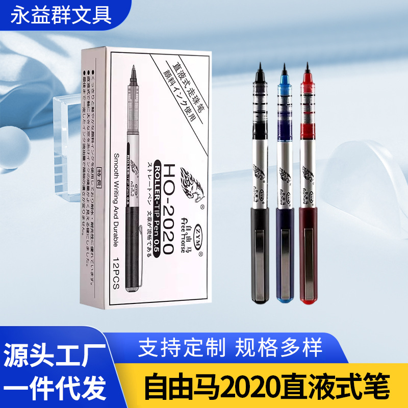 フリーホース 2020 ストレート液体ボールペン水ペン速乾性弾丸学生オフィス黒署名ペン 0.5 ミリメートル