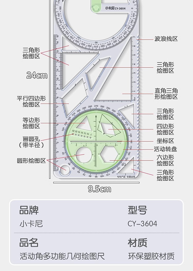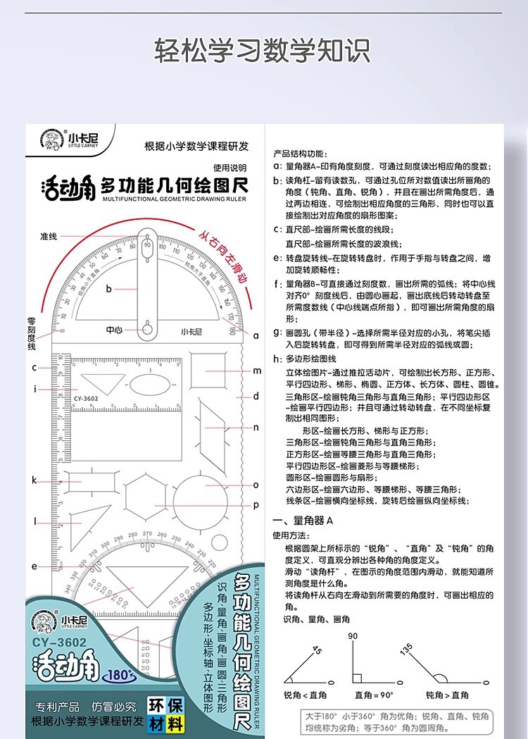 小学生活動角多機能作図物差し中学校高校数学幾何学図形定規回転可能画角定規
