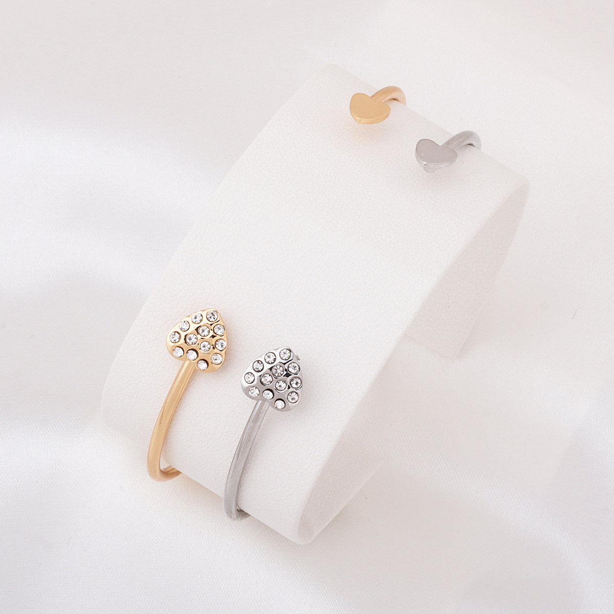 ヨーロッパとアメリカの人気の韓国スタイルのジュエリー、ダイヤモンドがちりばめられたハート型のラブブレスレット、オープンゴールドメッキブレスレット、ダブルピーチハートメーカー卸売