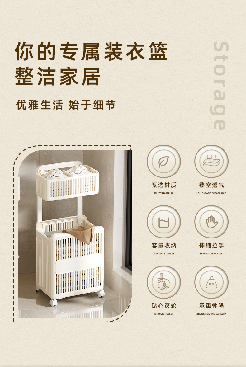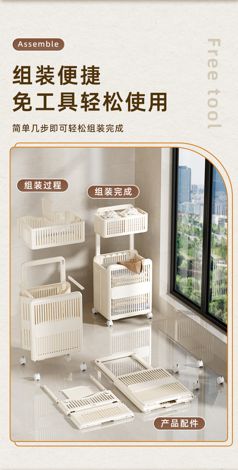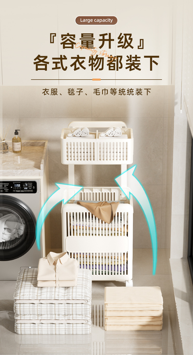 折り畳み洗濯物収納バスケット家庭用衣類浴室洗濯バスケット多層移動大容量洗濯かご