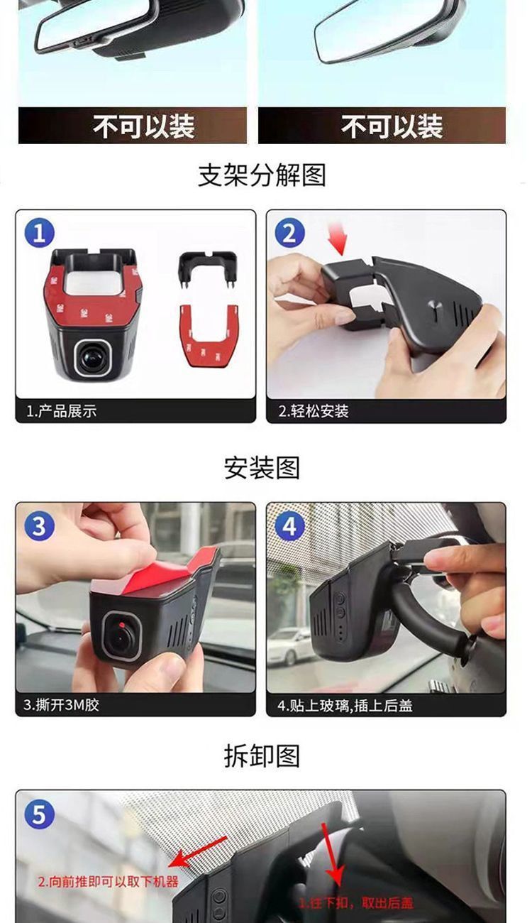 U型隐藏式高清行车记录仪Wifi手机互联1080P/4K双录/单录4S店专供