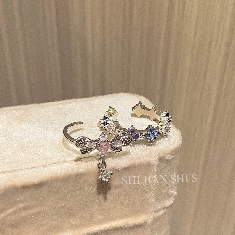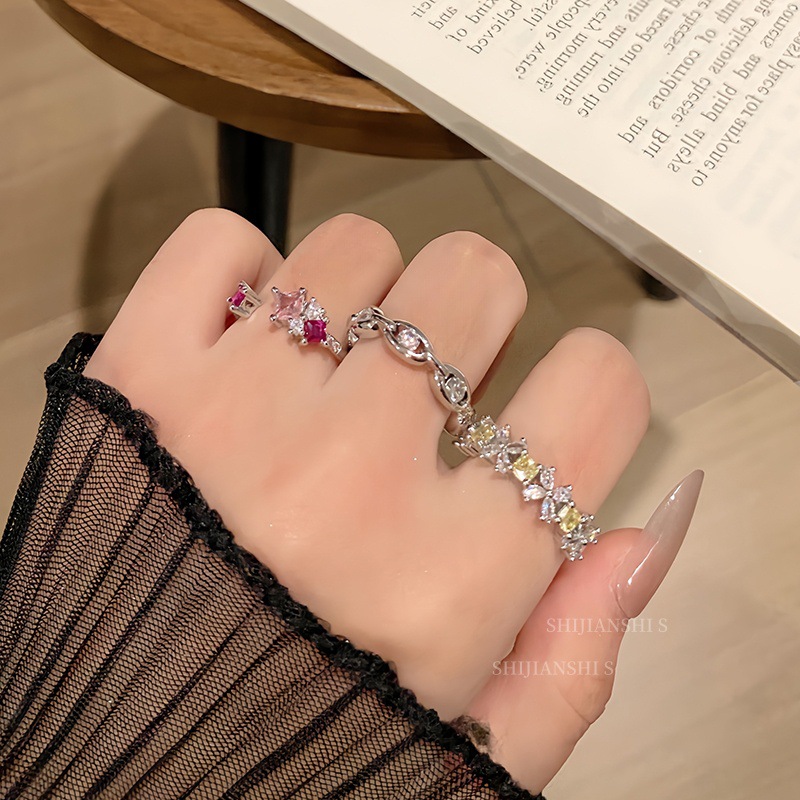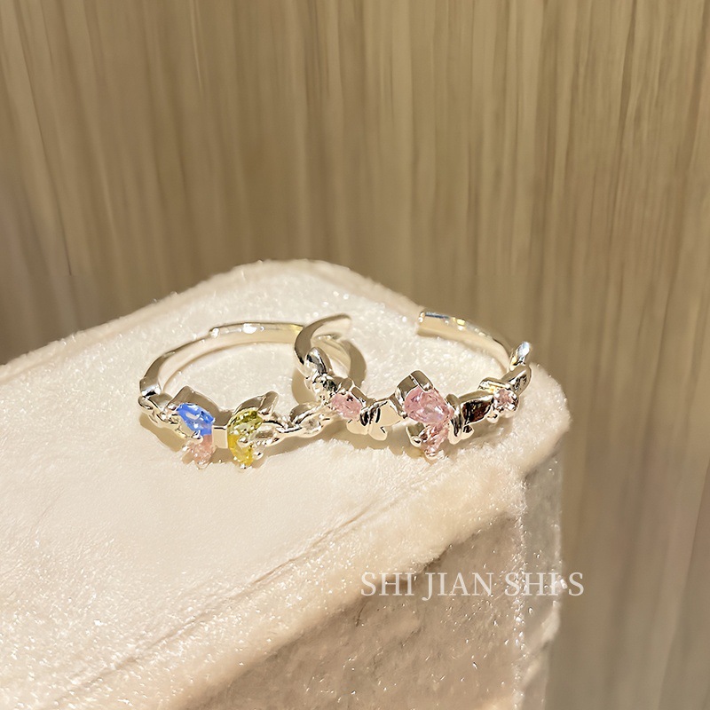 「碎花漫步」甜酷风彩锆开口戒指轻奢小众设计感精致个性指环配饰