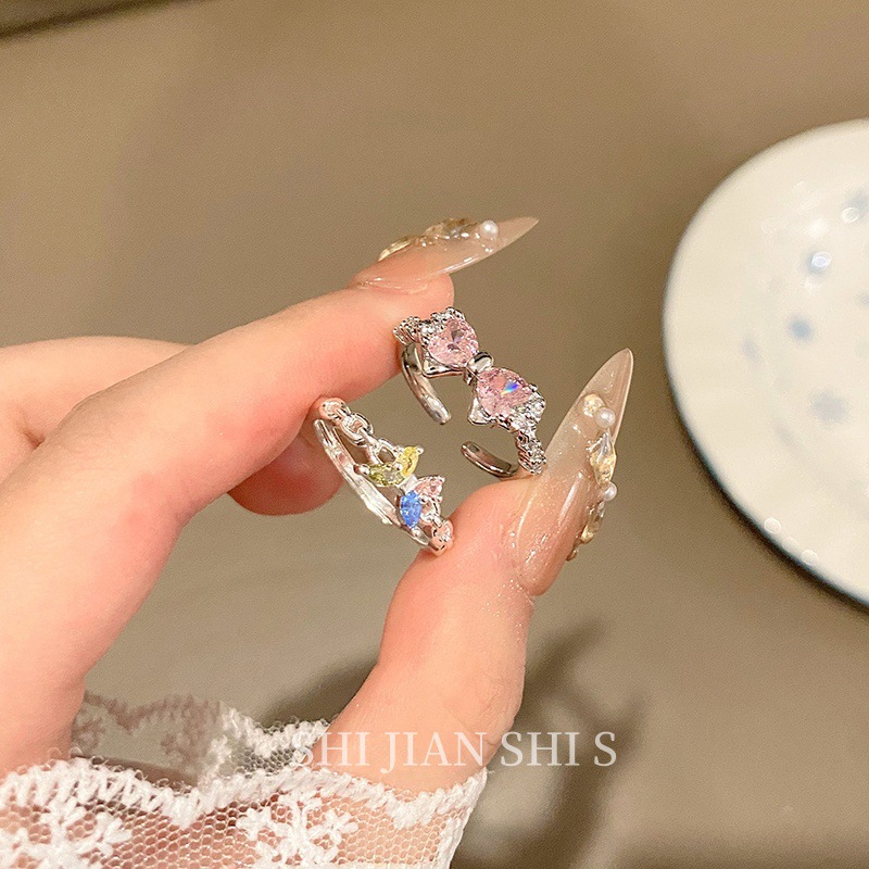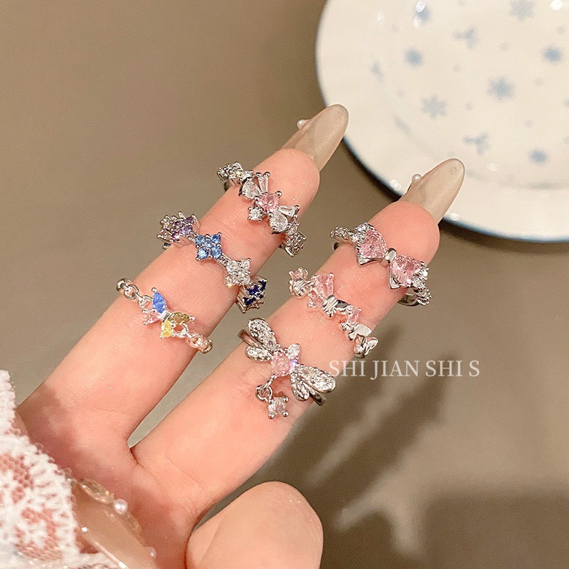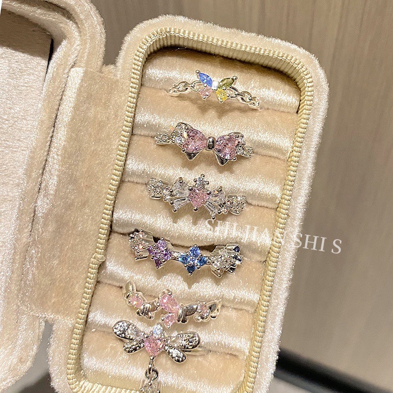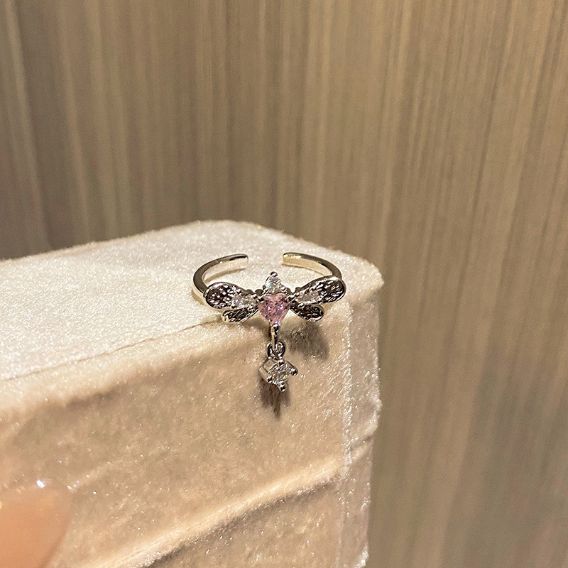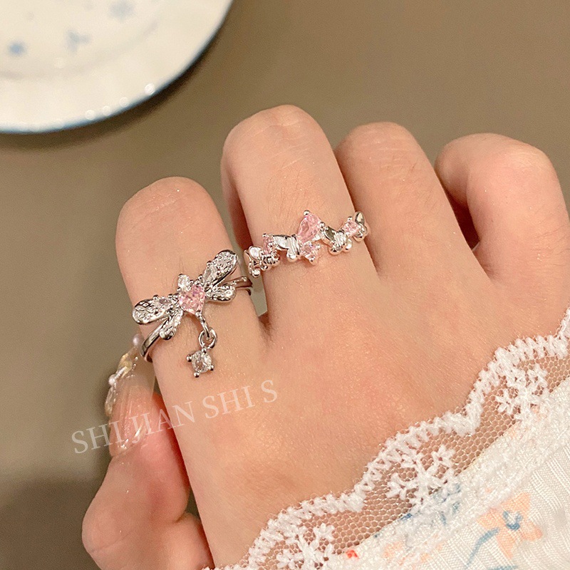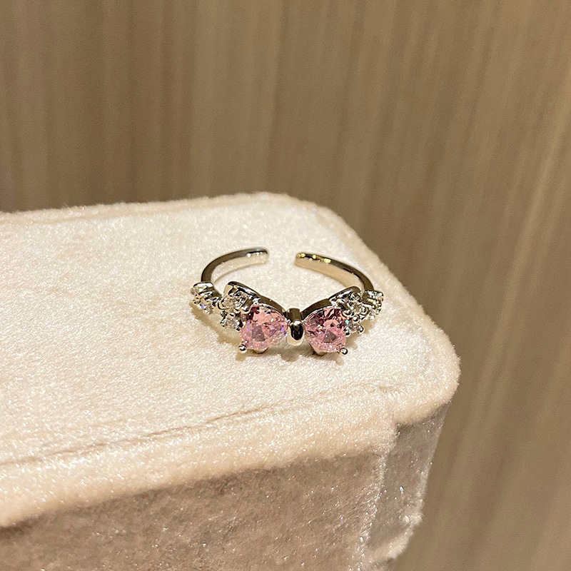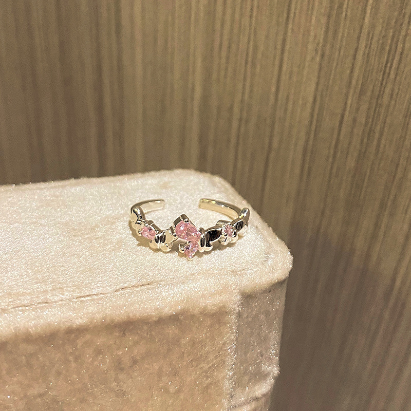 スイートピンクジルコニウムシリーズフルカラーダイヤモンドドーパミンリング女性用ベビーブレスバタフライハイエンドライトラグジュアリーニッチリング