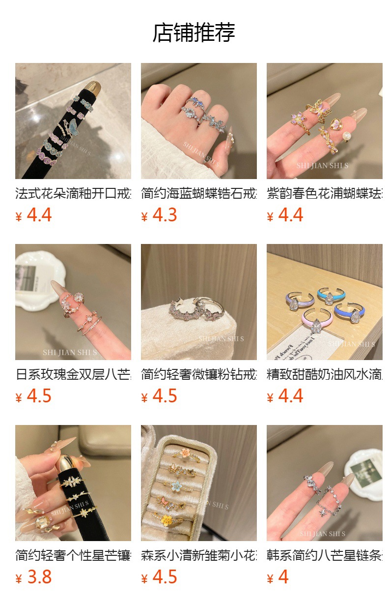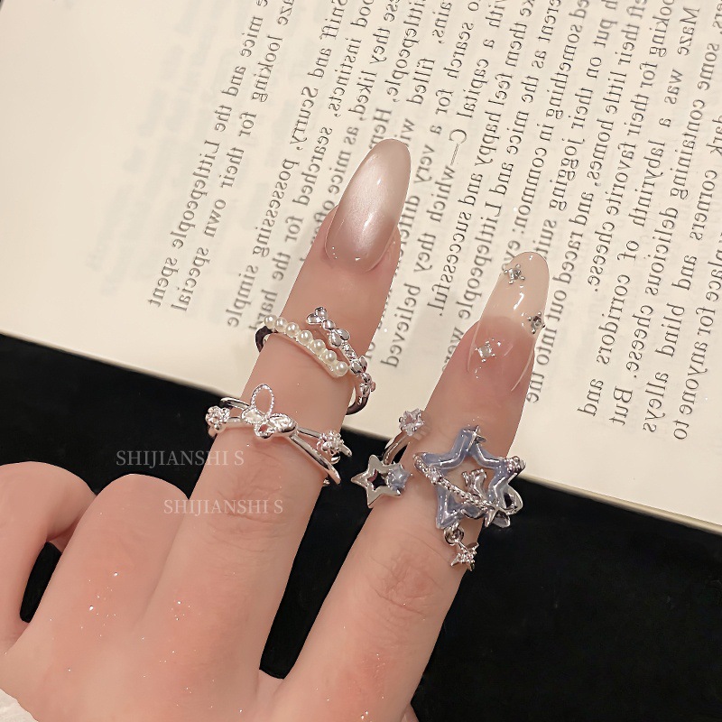 「蓝提糯糯」韩系简约叠戴蝴蝶戒指女冷淡风独特五角星食指戒配饰