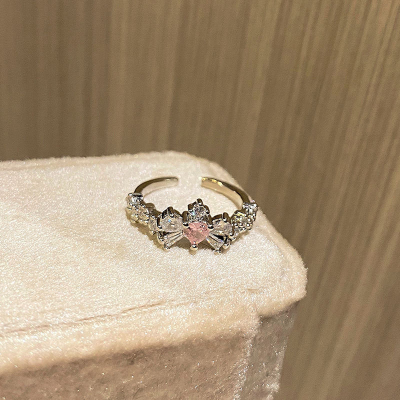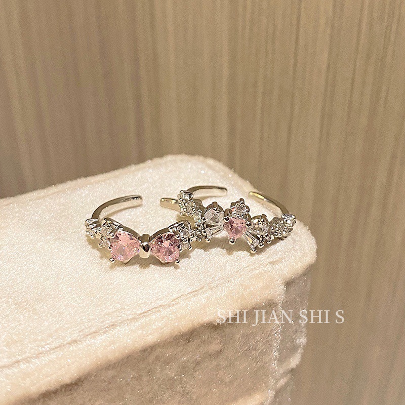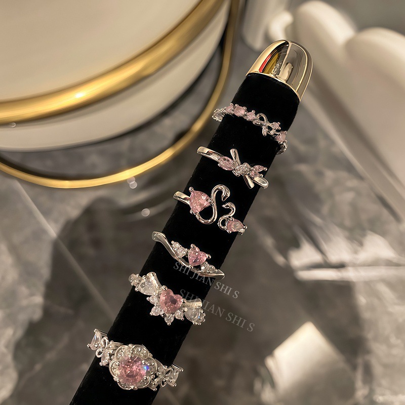 「浪漫悸动」樱花爱心天鹅粉钻戒指女浪漫少女千金感轻奢指环配饰