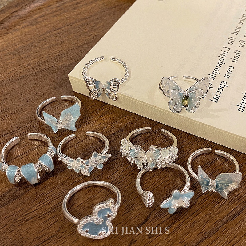 「海洋冰晶」奶蓝小清新蝴蝶系列珐琅戒指女时尚小众冷淡风食指戒