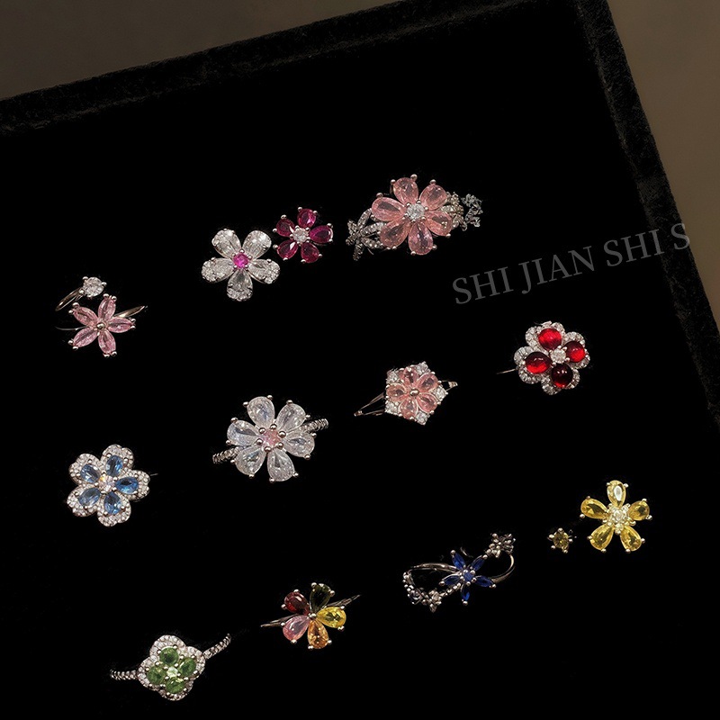 「缤纷彩锆」简约排花系列开口戒指女甜美时尚花朵高级感气质指环