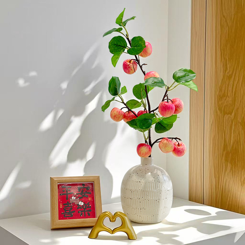 模擬アップルグリーン植物小口波形セラミック花瓶ホームインテリアリビングルームデスクトップ装飾模擬花装飾品